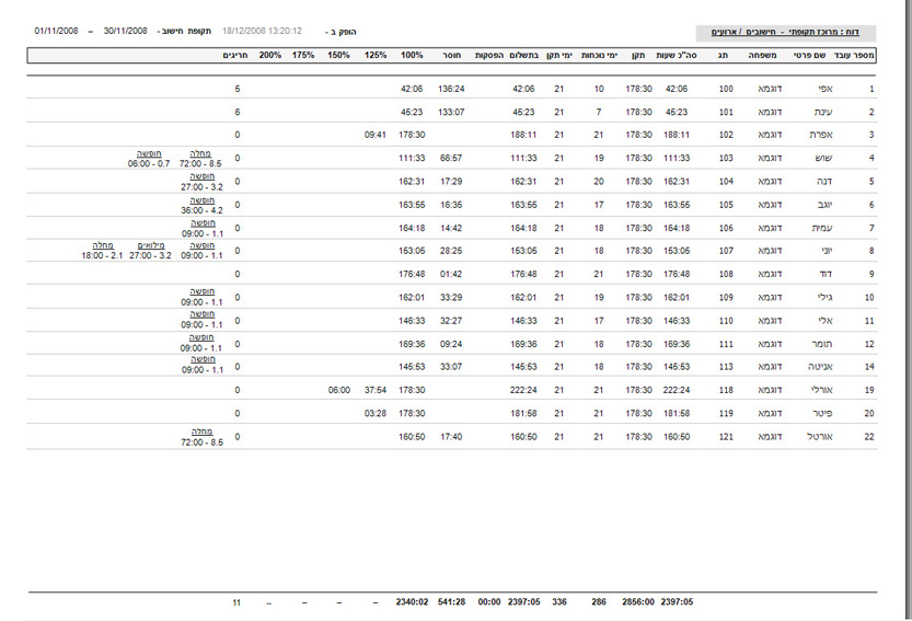 • ניהול הפקת דוחות בפילוח עובדים / ארגוני / מחלקתי ומותאם אישית המשקפים את הסכם העבודה