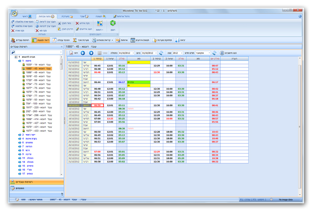 תוכנת נוכחות עובדים - מסך דיווחי נוכחות |