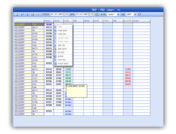 • ממשק נתוני תנועות מתוחכם וקל לשימוש המאפשר הזנה בין מהירה בין עובדים