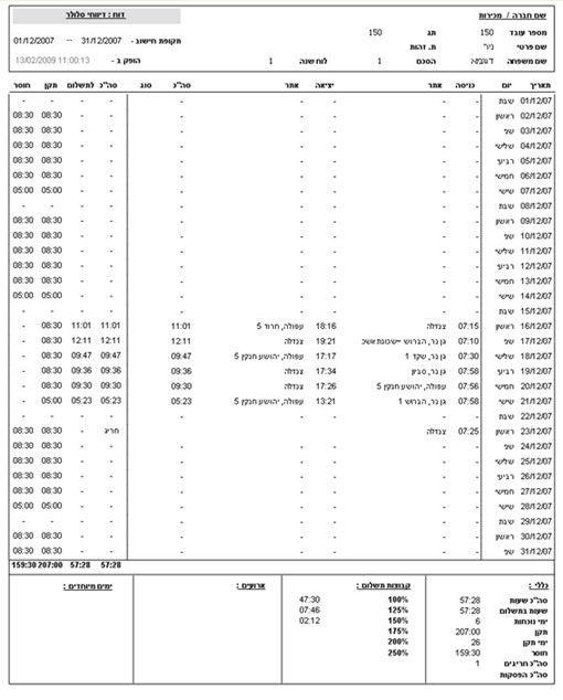 • דוח נוכחות מורחב ללא הגבלת מספר האתרים ליום